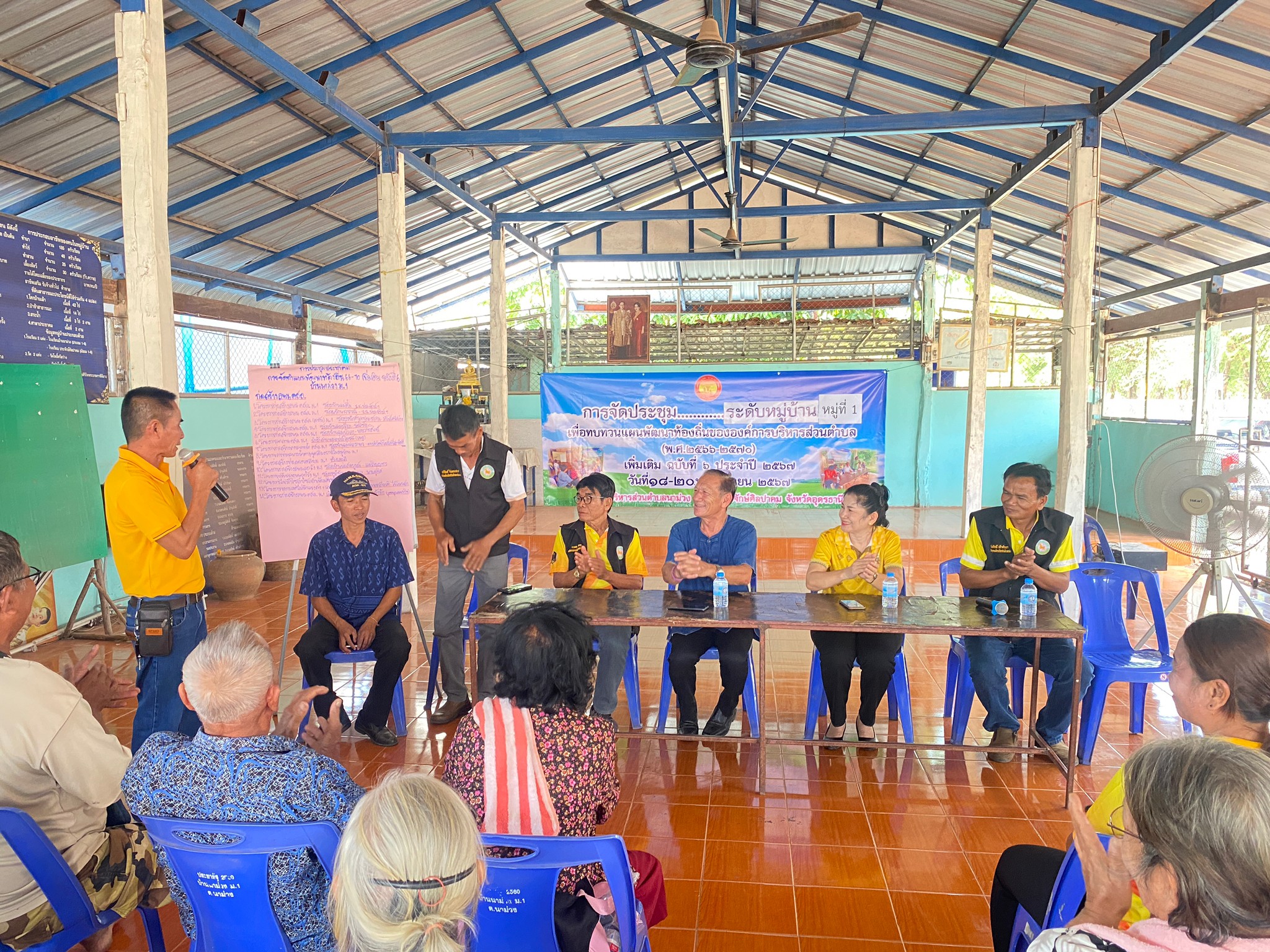 จัดประชุมระดับหมูบ้านเพื่อทบทวนแผนพัฒนาท้องถิ่น บ้านนาม่วง หมู่ที่ 1