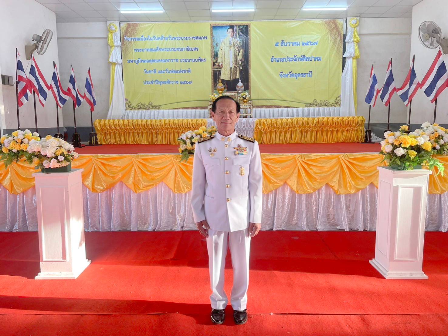 description วันที่ ๕ ธันวาคม ๒๕๖๗ เวลา ๐๘.๐๐ น. นายสุรพล ชาญนรา นายกองค์การบริหารส่วนตำบลนาม่วง คณะผู้บริหาร ประธานสภาฯ สมาชิกสภาอบต.นาม่วง พร้อมเจ้าหน้าที่องค์การบริหารส่วนตำบลนาม่วง เข้าร่วมทำบุญตักบาตรและร่วมพิธีวางพานพุ่มดอกไม้ถวายราชสักการะ เนื่องในวันคล้ายวันพระบรมราชสมภพพระบาทสมเด็จพระบรมชนกาธิเบศร มหาภูมิพลอดุลยเดชมหาราช บรมนาถบพิตร วันชาติ และวันพ่อแห่งชาติ ๕ ธันวาคม ๒๕๖๗ เพื่อน้อมรำลึกในพระมหากรุณาธิคุณที่ทรงมีต่อปวงชนชาวไทยเป็นล้นพ้นอย่างหาที่สุดมิได้ ณ หอประชุมโรงเรียนประจักษ์ศิลปาคม person admin