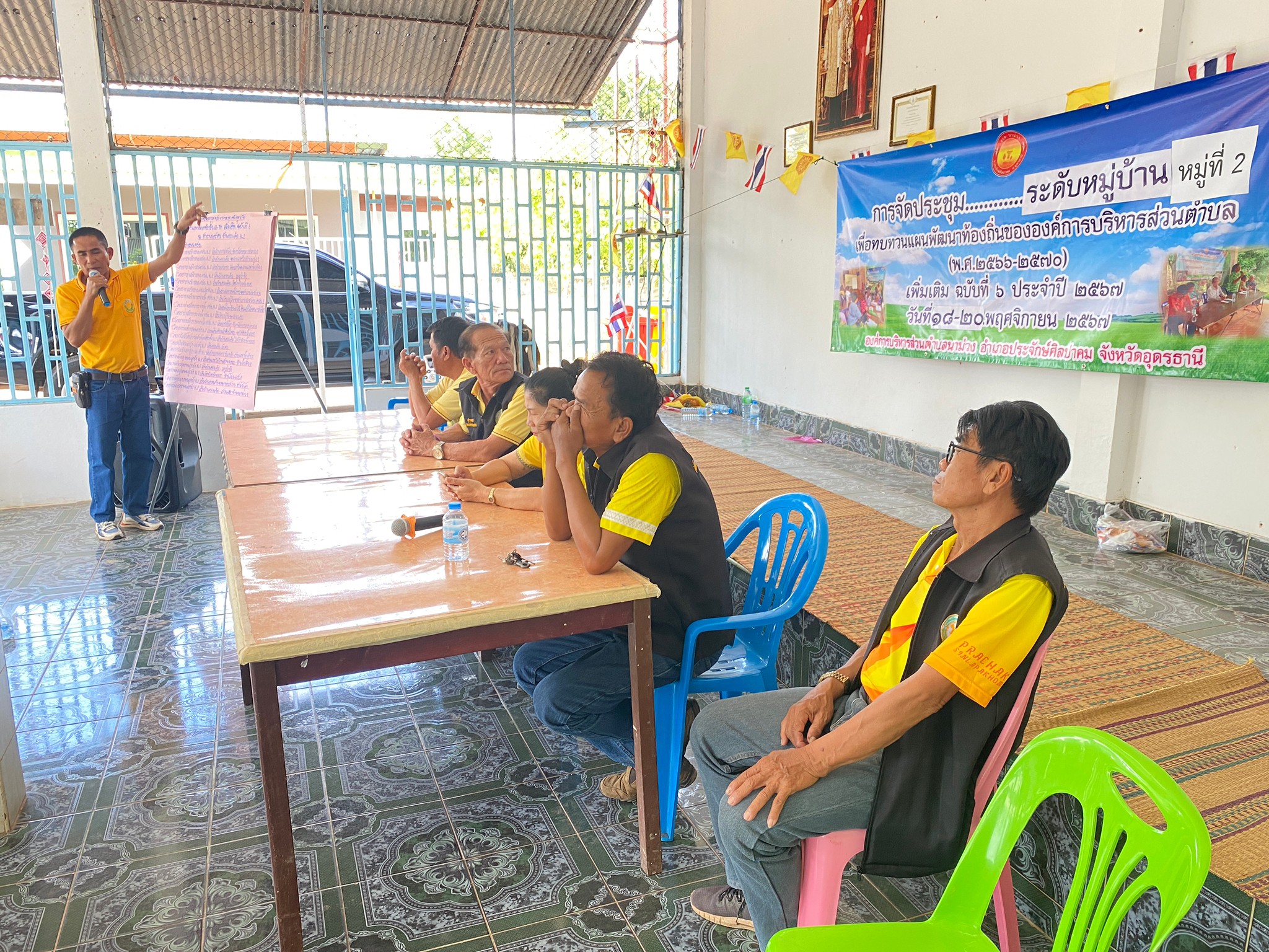 จัดประชุมระดับหมูบ้านเพื่อทบทวนแผนพัฒนาท้องถิ่น บ้านดอนค้อ หมู่ 2