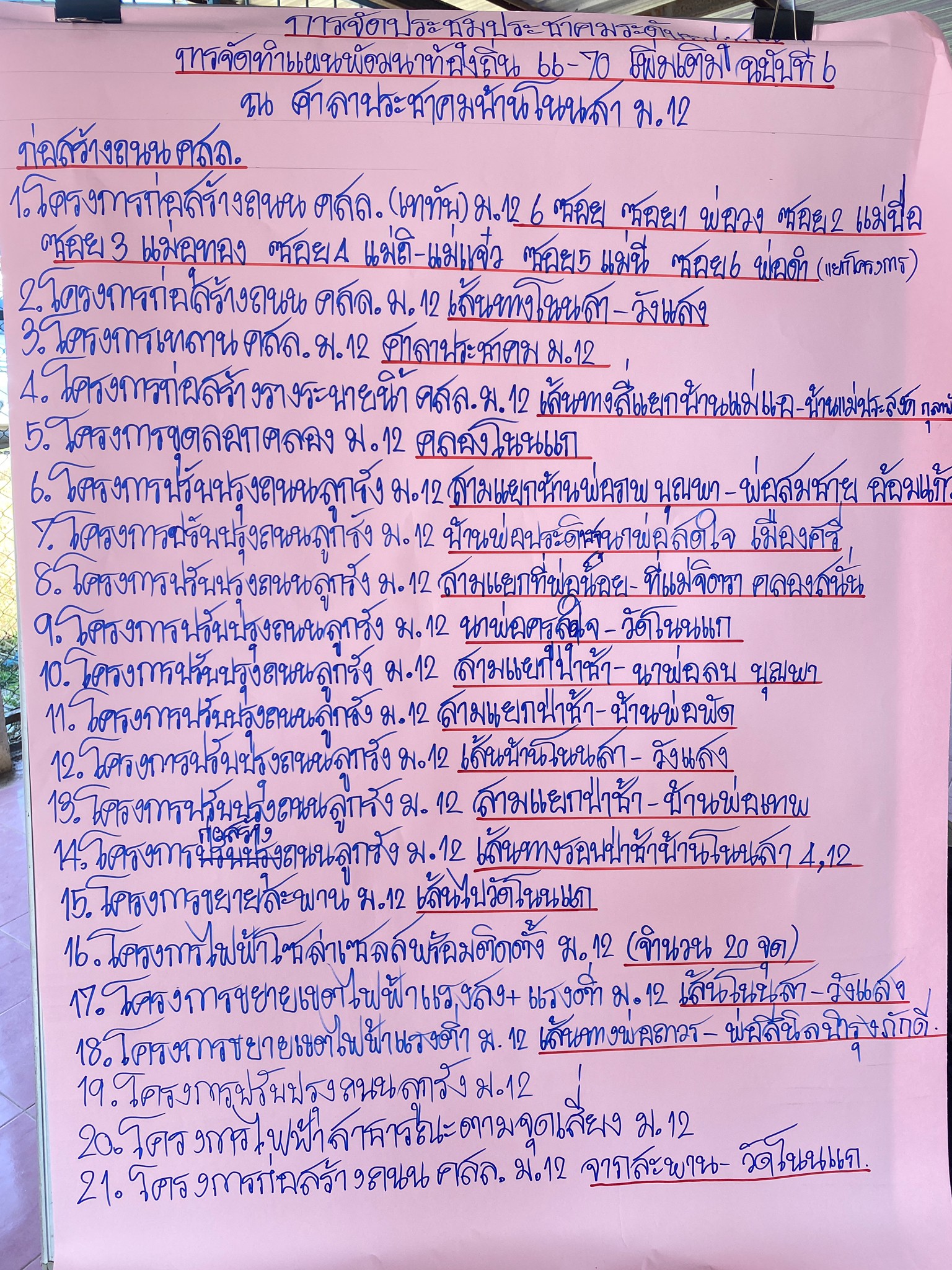 วันจันทร์ที่ 18 พฤศจิกายน 2567 เวลา 10.50 น. นายสุรพล ชาญนรา นายกองค์การบริหารส่วนตำบลนาม่วง คณะผู้บริหาร ประธานสภาฯ ปลัดองค์การบริหารส่วนตำบลนาม่วง พร้อมเจ้าหน้าที่องค์การบริหารส่วนตำบลนาม่วง จัดประชุมระดับหมูบ้านเพื่อทบทวนแผนพัฒนาท้องถิ่นขององค์การบริหารส่วนตำบล (พ.ศ.2566 – 2570) ณ บ้านบ้านโนนสา หมู่ 12 ตำบลนาม่วง อำเภอประจักษ์ศิลปาคม