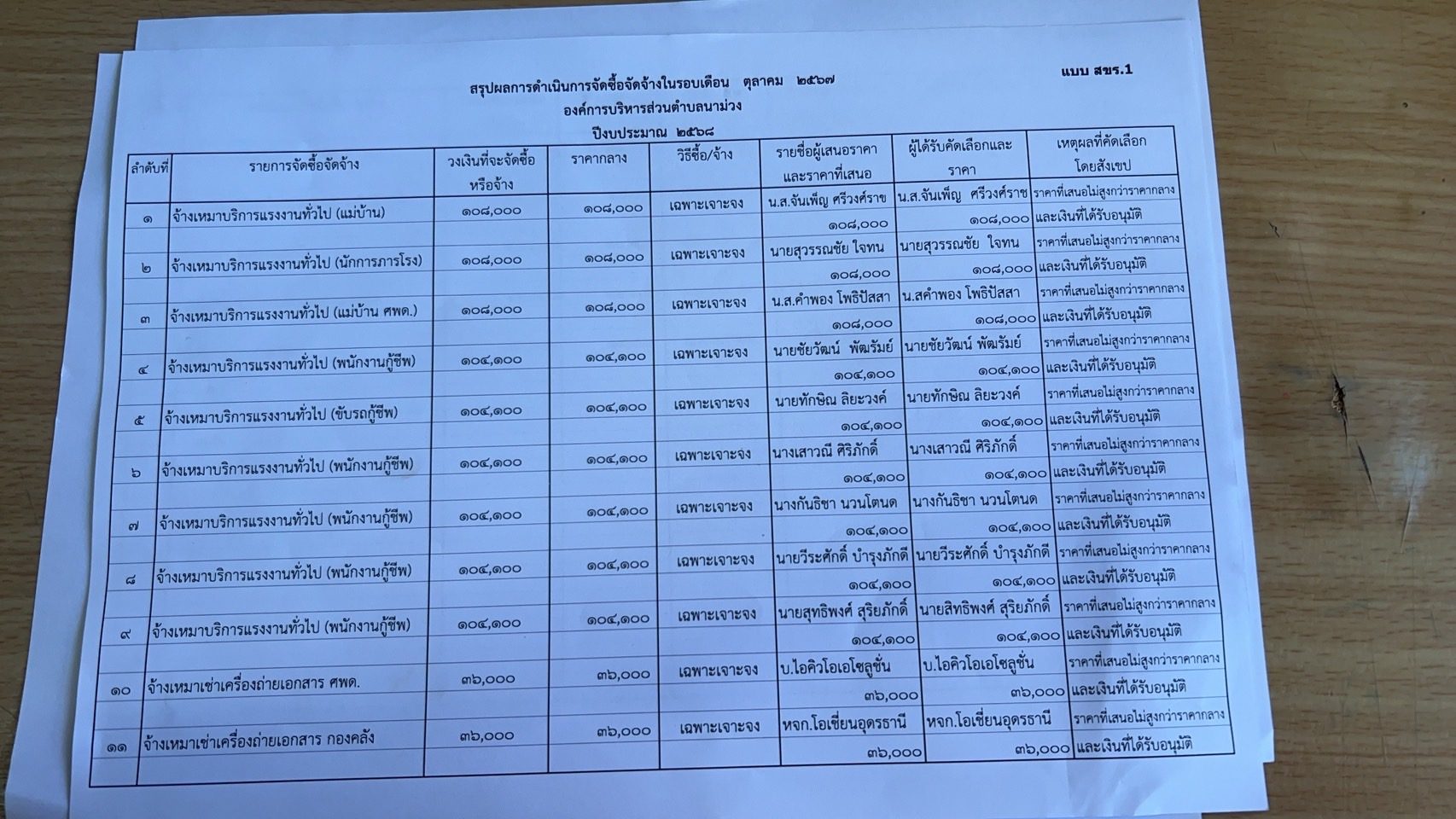 สรุปผลการดำเนินการจัดซื้อจัดจ้างในรอบเดือน ตุลาคม 2567